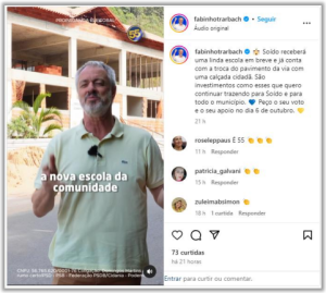 Em um processo encontrado na plataforma da PJe Consulta Pública, Fabinho estaria utilizando de obras e serviços da prefeitura para promover a sua campanha como candidato à Prefeito nas redes socias como o Instagram através da conta “@fabinhotrarbach”.