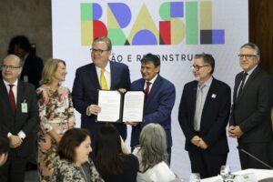 Brasília (DF), 23/08/2023 – O ministro do Desenvolvimento Social, Wellington Dias, assina acordo de cooperação com a Amazon durante instalação do grupo de trabalho Primeira Infância do Conselho de Desenvolvimento Econômico Social Sustentável (CDESS). Foto: Marcelo Camargo/Agência Brasil
