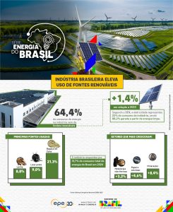 SÉRIE ENERGIA DO BRASIL – Com o objetivo de divulgar à população os principais destaques do Relatório Final do Balanço Energético Nacional (BEN), o MME lançou a série especial Energia do Brasil. A produção traz conteúdos explicativos e infográficos que mostram, de forma clara e acessível, os avanços e desafios do setor energético brasileiro. Assim, a pasta apresenta como o país tem avançado na descarbonização da matriz energética, no uso de fontes renováveis na indústria e no setor residencial, na eletrificação do transporte, na diversificação dos biocombustíveis e na expansão das fontes solar e eólica na geração de eletricidade.